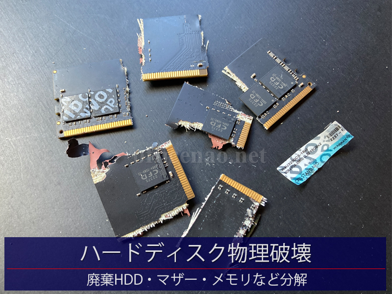 ハードディスクは、堅牢なケースの中に磁気ディスクが数枚格納されていますので、物理破壊するのに一番労力が必要な部品です。