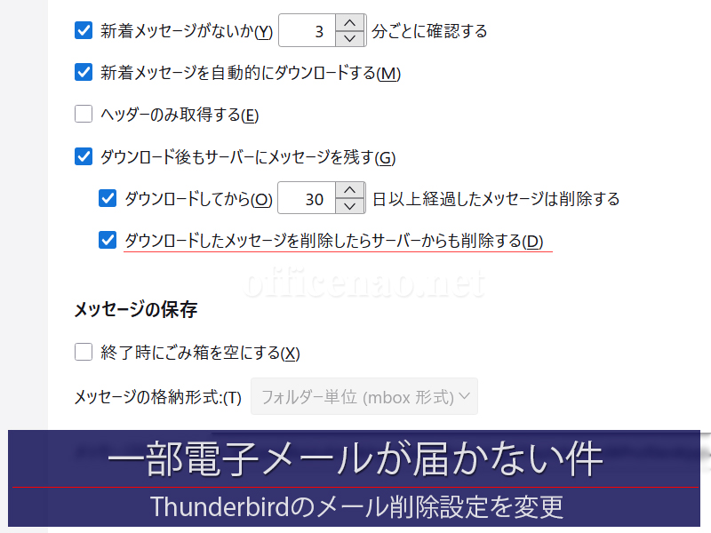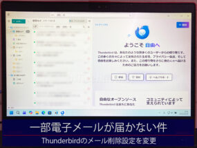詳しく調査してみると、ノートパソコンのThunderbird設定にて、「ダウンロードしたメッセージを削除したらサーバーからも削除する」が有効になっていました。