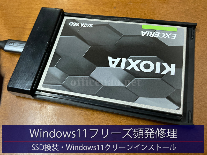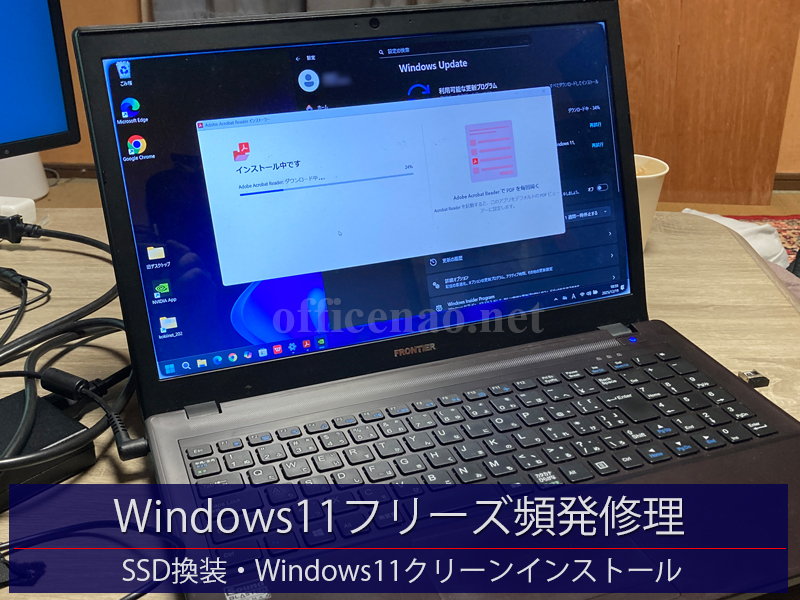 数日前にWindows11のアップデートに失敗したとの画面表示があり、その後Windows11を起動する度に、数分でフリーズするようになったとのことでした。