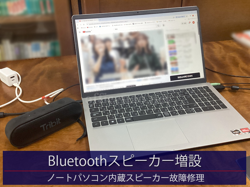 先日ノートパソコンの音声出力が故障したお客様向けに、外付Bluetoothスピーカーを設置しました。