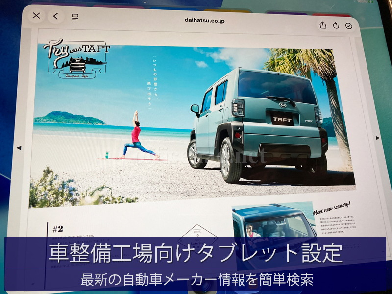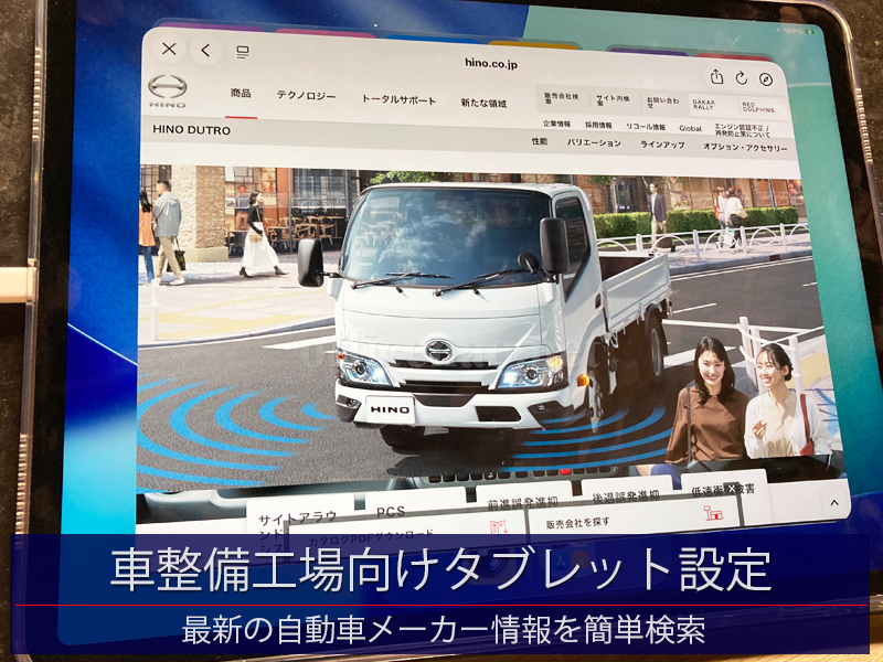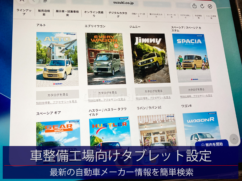 先日iPad Airタブレット(13インチ)を納品させて頂いた車整備工場様より、手軽に主要自動車メーカーのカタログを閲覧できるようにメニュー化できないかとの相談を受け、設定を行わせて頂きました。