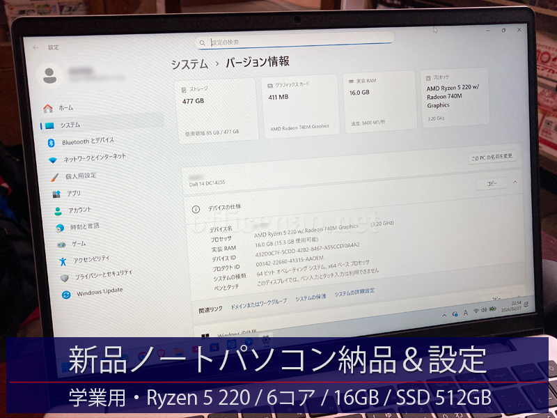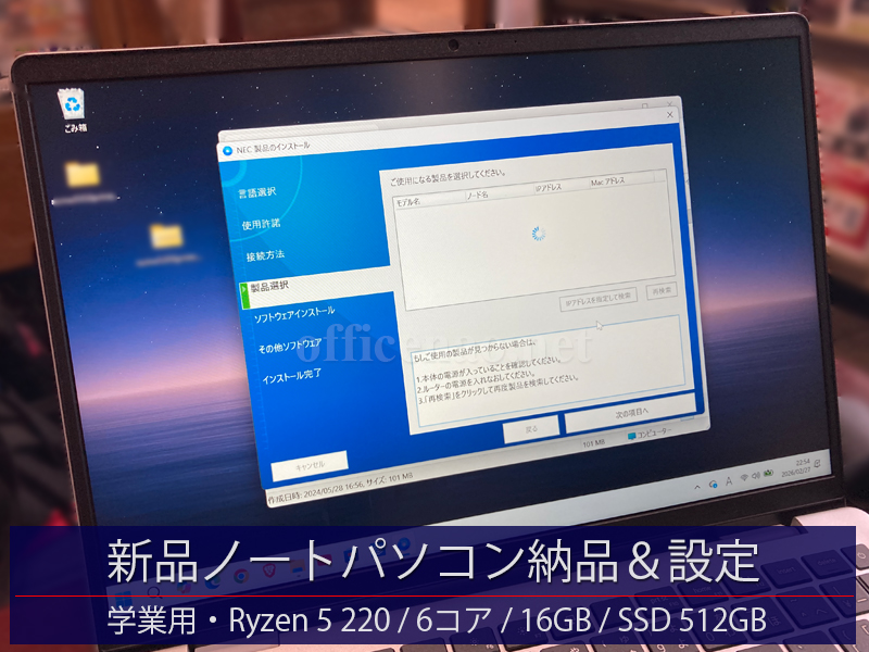 ちょうど要求スペックを満たしている新品ノートパソコンの在庫がございましたので、その日の午後から納品&設定を行わせて頂きました。