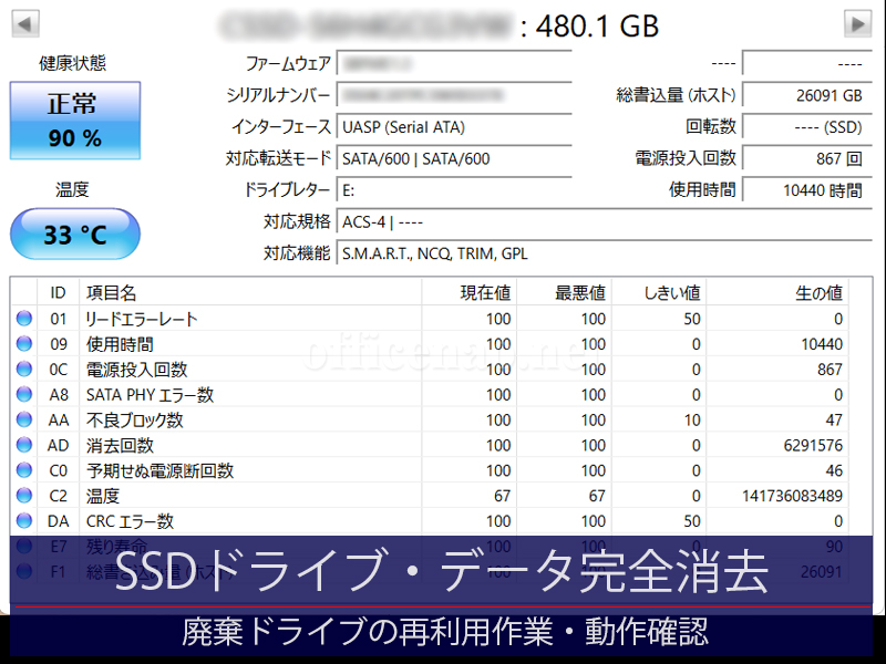 本日は先日お客様のもとで不要となったデスクトップパソコン用のSSDドライブの再利用作業です。データを完全に消去してから、作業用ドライブとしてストックすることになります。