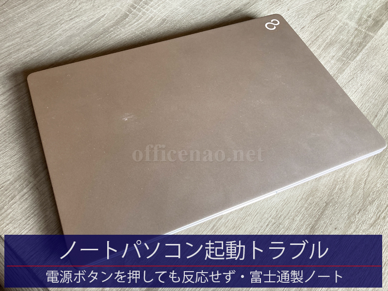 約2年ほど使用していなかったらしい富士通製のWindowsノートパソコンですが、電源ボタンを押しても起動しません。