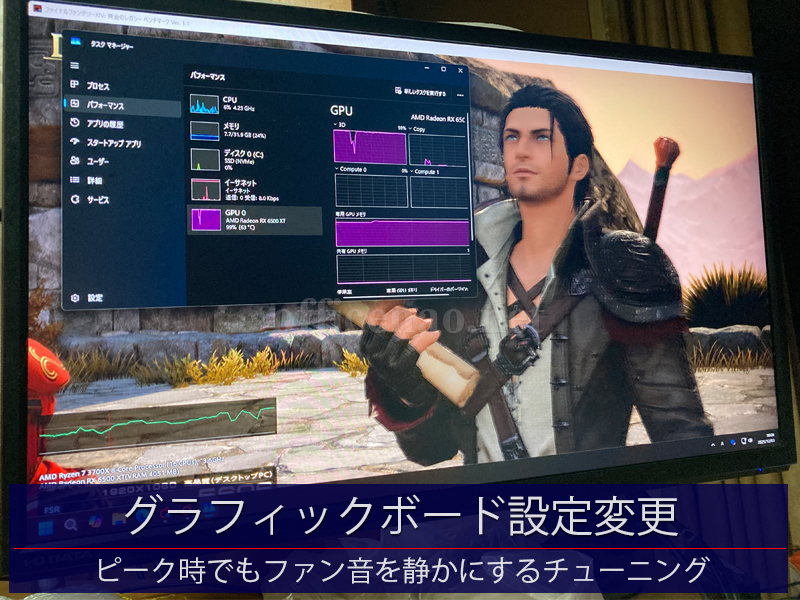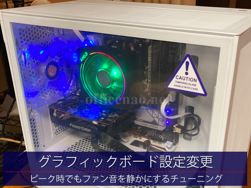 先日、このパソコンに中古のグラフィックボードを取り付けて、ベンチマークソフトを実行してみたところ、グラフィックボードに負荷がかかった時にGPUファンの回転数がしばらく最速回転となり、かなり五月蝿い状態になりました。