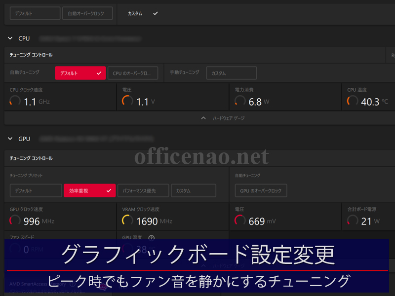 今回の設定により、GPUに供給される電力がある程度カットされ、GPUが100%処理の状態が続いても温度が上昇しにくいように最適化されました。