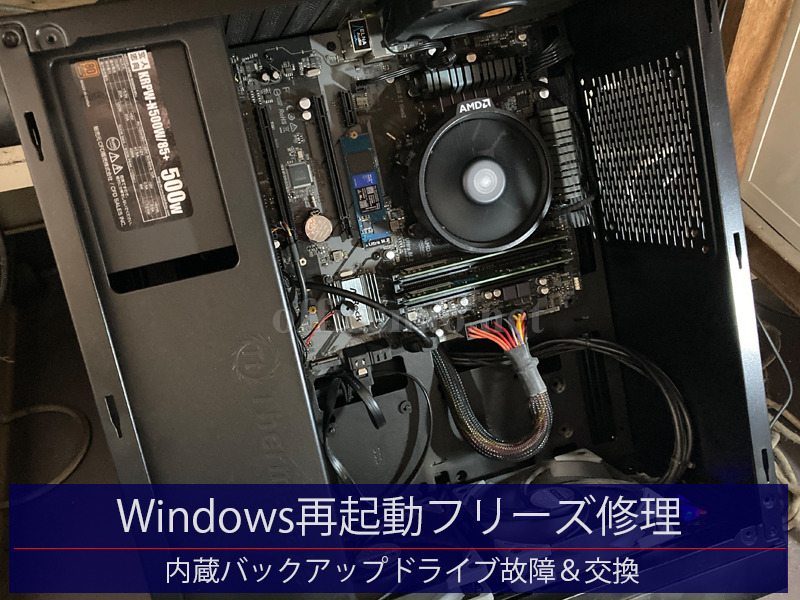 京丹後市内の自動車整備工場より、デスクトップパソコンが再起動の際にフリーズするようになったとの連絡を受け、午後から原因究明と修理に訪問させて頂きました。