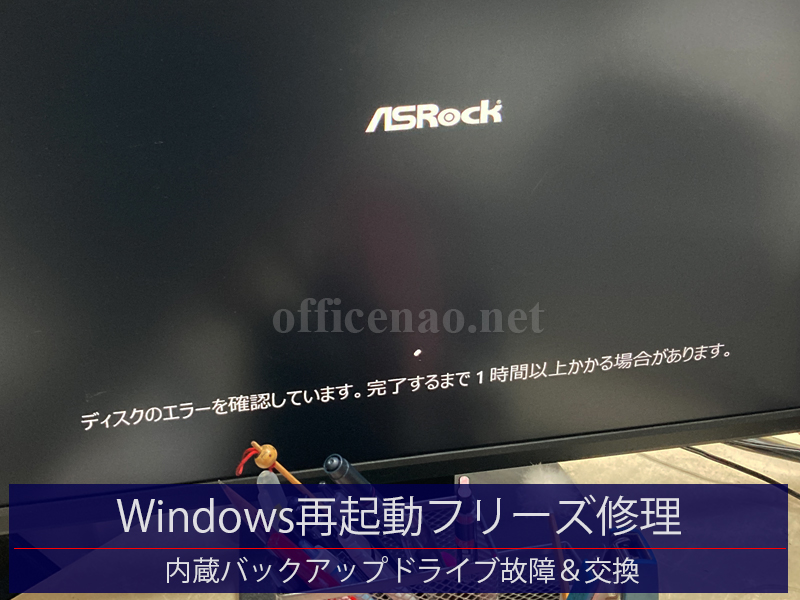 仕方ないので強制電源OFFしてからWindowsを起動してみますが、Windowsの起動は正常に行われるのですが、SSD(M.2)搭載のデスクトップなのにシステムのレスポンスが非常に遅い状態です。